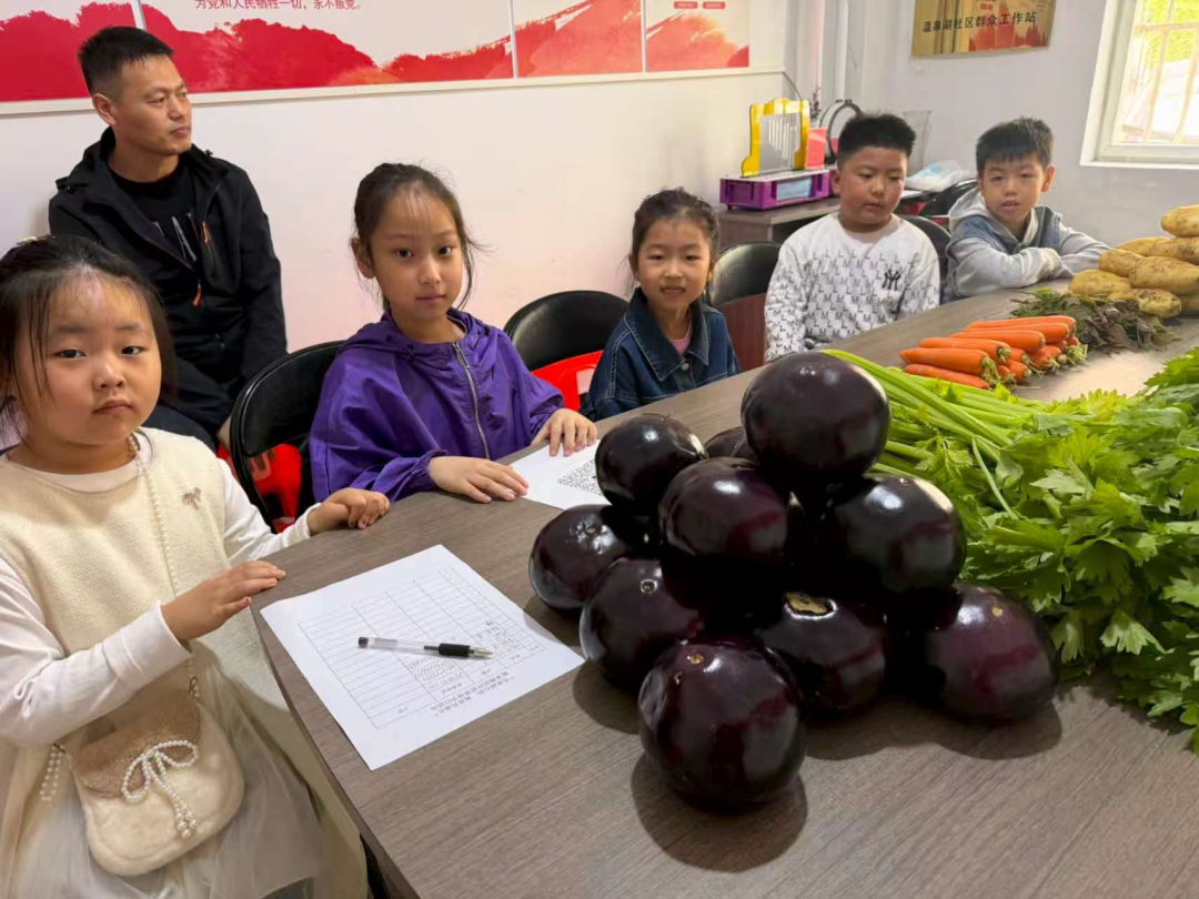 活动现场,书香与菜香交织,欢声笑语不断。社区志愿者提前筹备了各类新鲜应季蔬菜,色泽鲜亮、品类丰富,等待着居民们的到来。小朋友们在跳绳、踢毽子的趣味暖场游戏中活跃起来,个个精神饱满、兴致盎然。