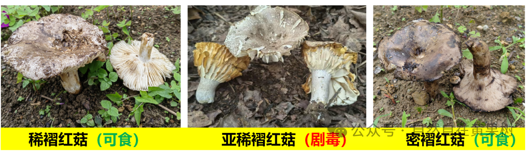 老百姓常常将亚稀褶红菇与可食用的密褶红菇混淆,因其晾干后可变成黑似炭色,统一称为“火炭菌、糊碳蕈、猪鼻子菌、石灰菌”等,发生误采误食的情况。进食亚稀褶红菇后,引起横纹肌溶解,病情发展十分迅猛,常常在进食十几分钟至半小时即出现症状,救治不及时极易引起多器官功能衰竭而导致死亡,需引起公众关注。