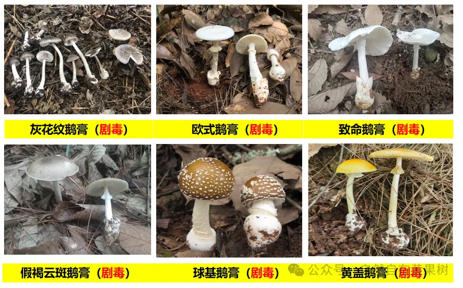 鹅膏类蘑菇就是老百姓常说的“白伞伞”,它有着“头上戴帽,腰间系裙,脚上穿靴”的外观特点,老百姓常常将剧毒的致命鹅膏与可食用的中华鹅膏,统一称为“鸡蛋菌”,将灰花纹鹅膏或小豹斑鹅膏当作“芝麻菌、伞把菇”等,鹅膏类蘑菇长相类似,仅从形态上,甚至连专业人员有时候也难以辨别,极易导致误采误食。剧毒鹅膏类蘑菇可导致肝肾损害,救治不及时易导致死亡,需引起公众关注。