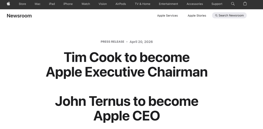 苹果一口气在官网连更两篇新闻,库克自己也发布了公开信,多篇文章中详细梳理了库克时期的关键功绩、接班人特纳斯曾立下的关键功劳。