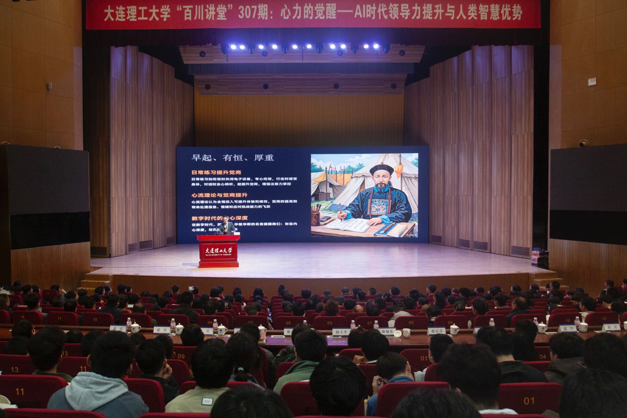 智潮奔涌,心力为锚;时代更迭,领创为光。近日,中国传媒大学教授、央视《百家讲坛》主讲人、2022中国十大品牌年度人物、九思书院创办人赵玉平做客我校“百川讲堂”第307期,带来主题为《心力的觉醒:AI时代领导力提升与人类智慧优势》的讲座。副校长康旭东,校团委以及来自校内各单位、各学院及书院的师生、百川会员等共计600余人到场聆听讲座。