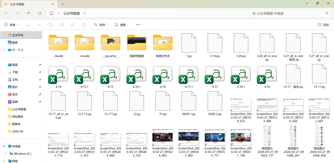 比如,这个各种格式文件混在一起的文件夹。