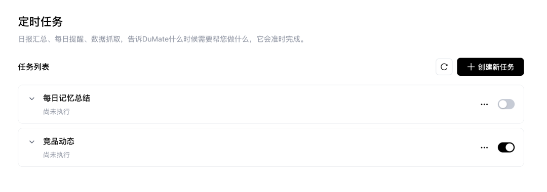 日报汇总、每日提醒、数据抓取,告诉搭子DuMate什么时候需要帮您做什么,它会准时完成