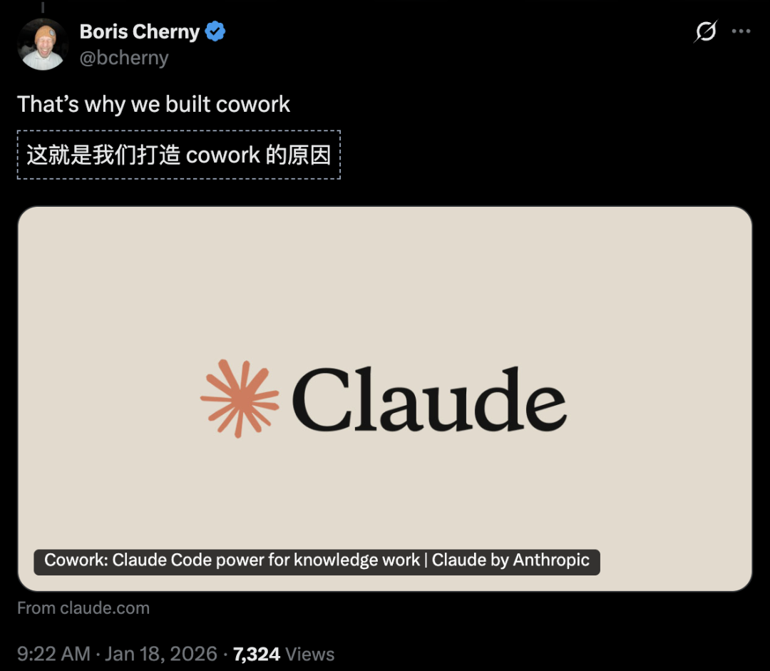 听起来是不是很耳熟?没错,这就是Claude Cowork的路子。