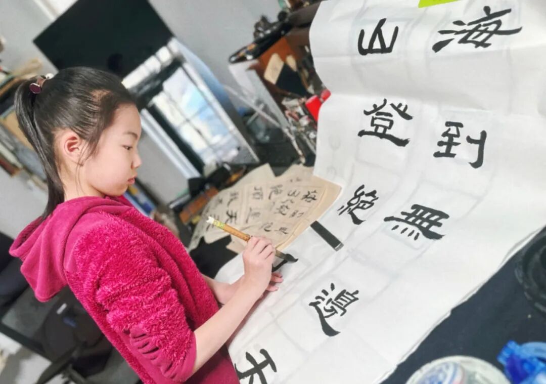 于麓童七岁起跟随书法老师学习书法,在笔墨中感悟中华优秀传统文化之美。