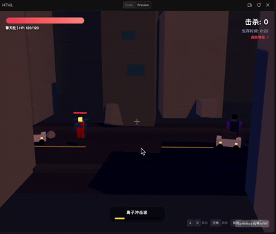 不过,在空间坐标的理解上出现了疑似提示词污染的问题——由于是“3D横版”,最终玩家控制的角色移动方式变为了上下移动,而非横版游戏中常见的左右移动。