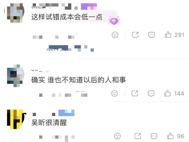 网友对此集体点赞,说吴昕清醒又务实,“试错成本”会低一点。