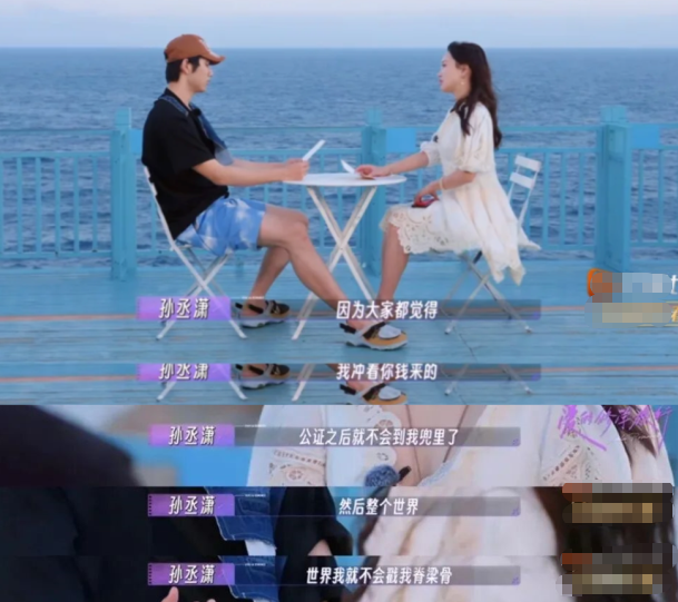 所以,录制《爱的修学旅行》期间,孙丞潇就表态:“既然大家都觉得我冲着你钱来的,公证之后钱就不会到我兜里了,也不会有人戳我脊梁骨了。”