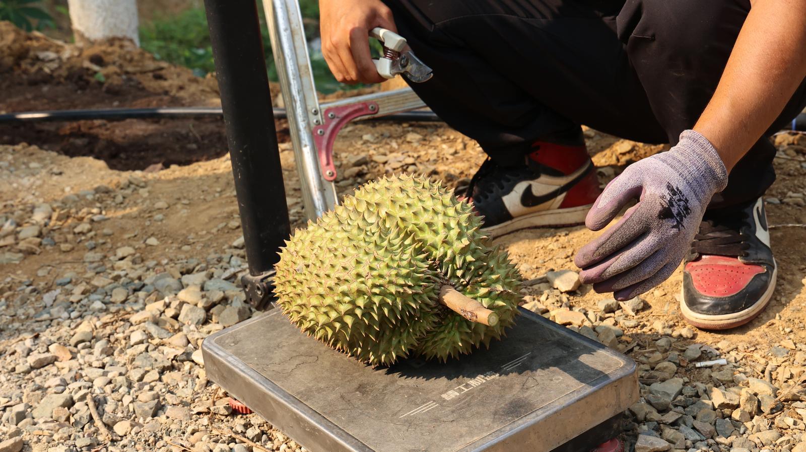 金平县一颗重达3.7公斤的金枕榴莲正式采摘 金平县融媒体中心供图