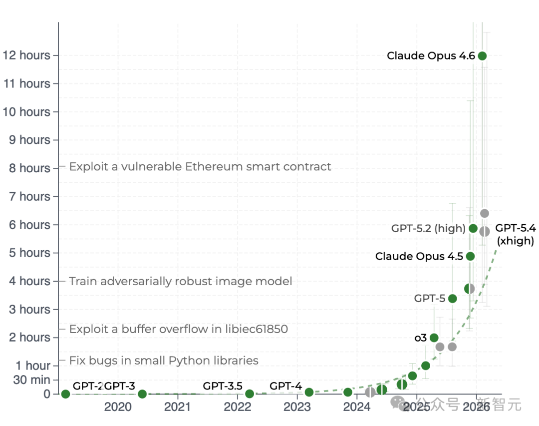 Claude Opus 4.5 和 GPT-5.2 发布之后,这条线的斜率又陡了一截。新的翻倍速度是——每 3 到 4 个月。