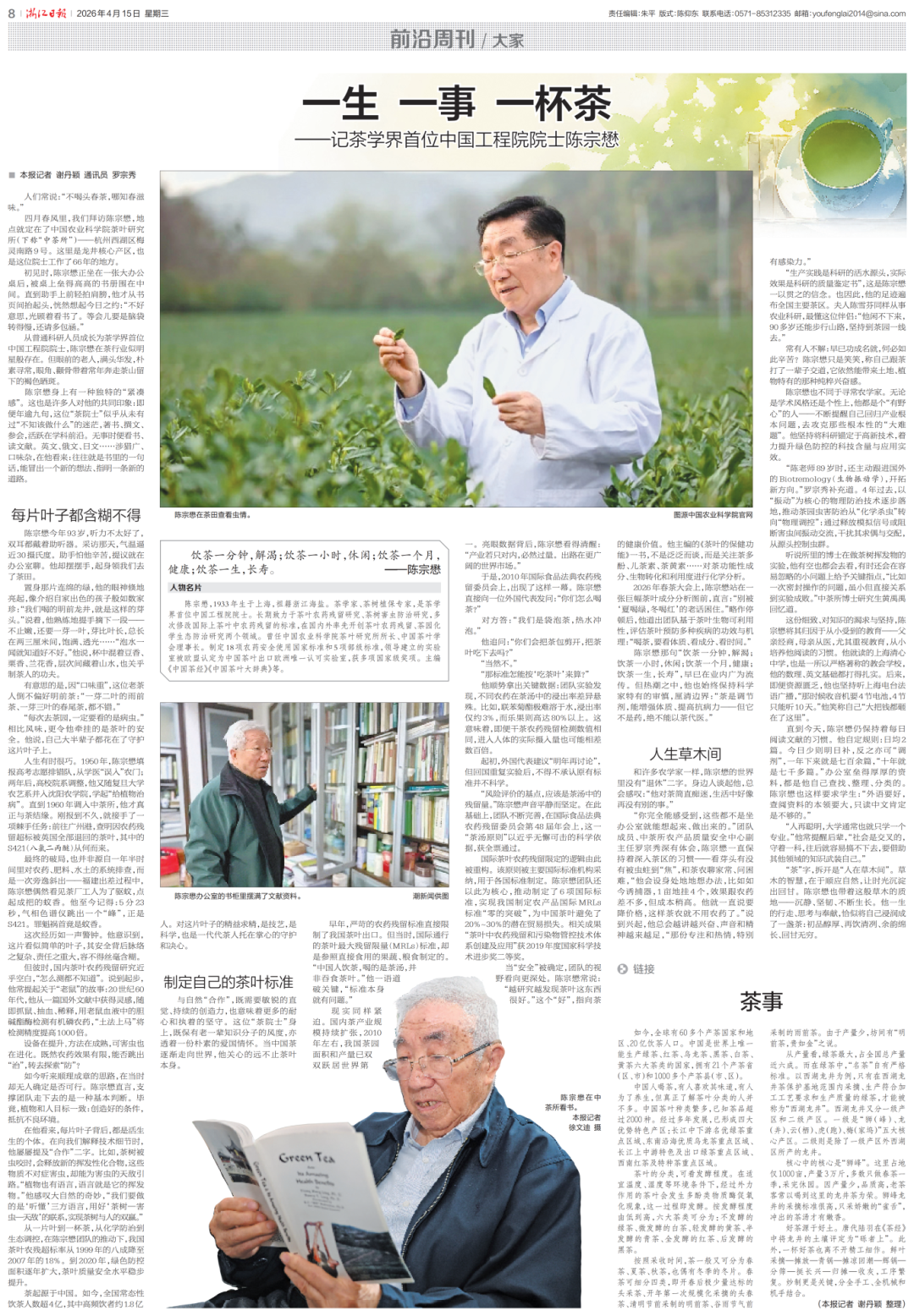 “浙里”科学家故事丨茶学界首位中国工程院院士陈宗懋:一生 一事 一杯茶