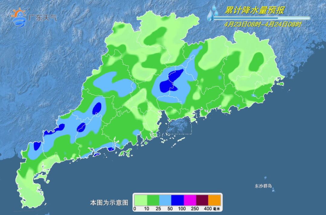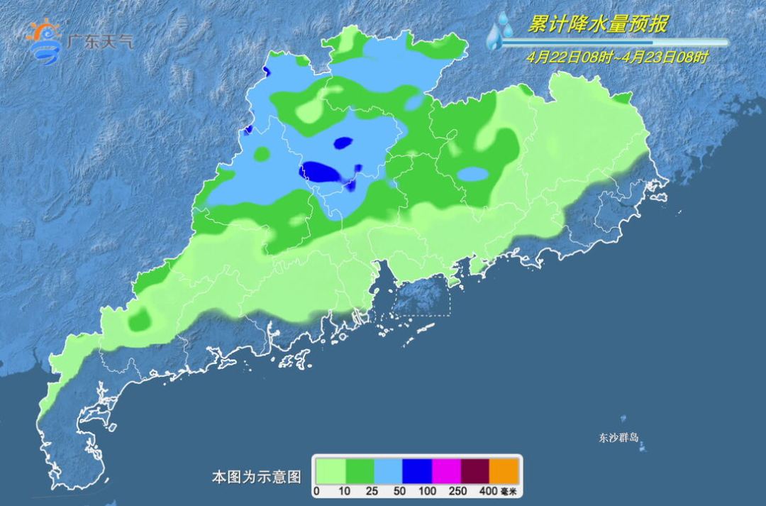 22日夜间到23日,河源、韶关南部、清远、广州、惠州、肇庆、茂名等市县多云到阴天,有大雨到暴雨局部大暴雨,粤北及珠江三角洲中北部的其余市县多云到阴天,有中到大雨局部暴雨,其余市县多云间阴天,有分散(雷)阵雨,局部大雨或暴雨;各地雷雨时局部伴有短时强降水、8级局部10级的短时大风等强对流天气。最高气温:南部市县25~28℃,其余市县22~25℃。