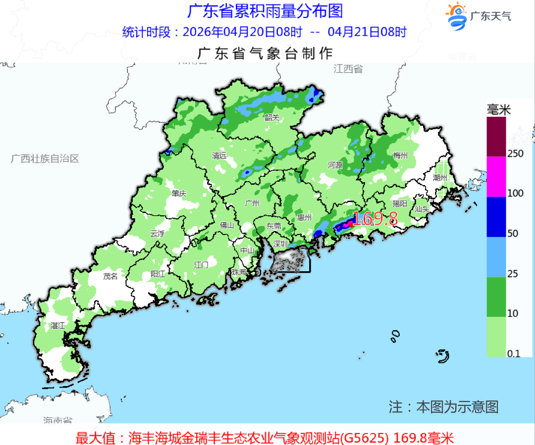 雨生百谷,万物润泽。在暖湿偏南风的影响下,昨天(4月20日)广东在分散的雷雨天气中,迎来了“谷雨”节气,其中,粤北、珠江三角洲中东部和汕尾市县局部出现了暴雨或大暴雨。