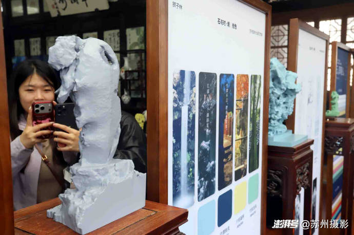 此次数字化成果发布,不仅为狮子林建立精准“数字备份”,更打破园林文化传播时空限制,推动园林美学走出“围墙”。活动现场,基于太湖石色谱开发的3D打印假山模型、色谱水杯、24色明信片等文创产品同步亮相,让园林色彩可触可感。
