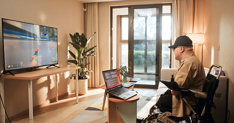 2025年12月新华社一篇名为《竞速脑机接口》的通讯中,展示了一张照片: 6月14日,在位于上海的受试者住所,受试者通过脑机接口玩赛车游戏。