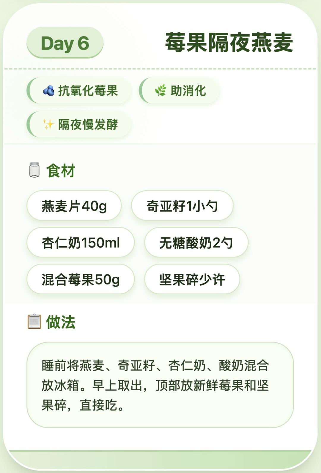 Day6️⃣:隔夜燕麦杯,前一天晚上备好,早上拿出来就能吃。