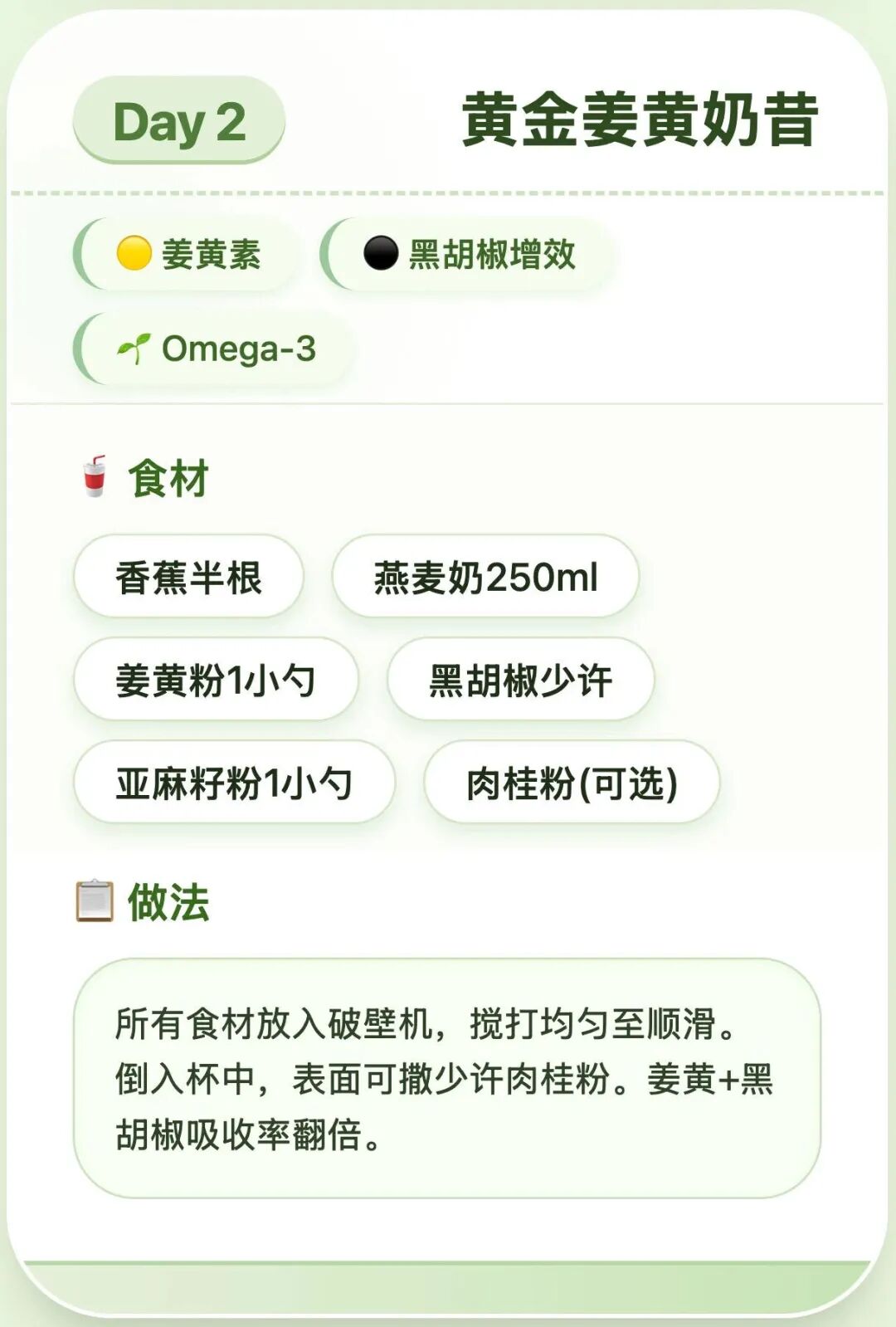 Day2️⃣:黄金姜黄奶昔,姜黄+黑胡椒,唤醒身体的代谢。