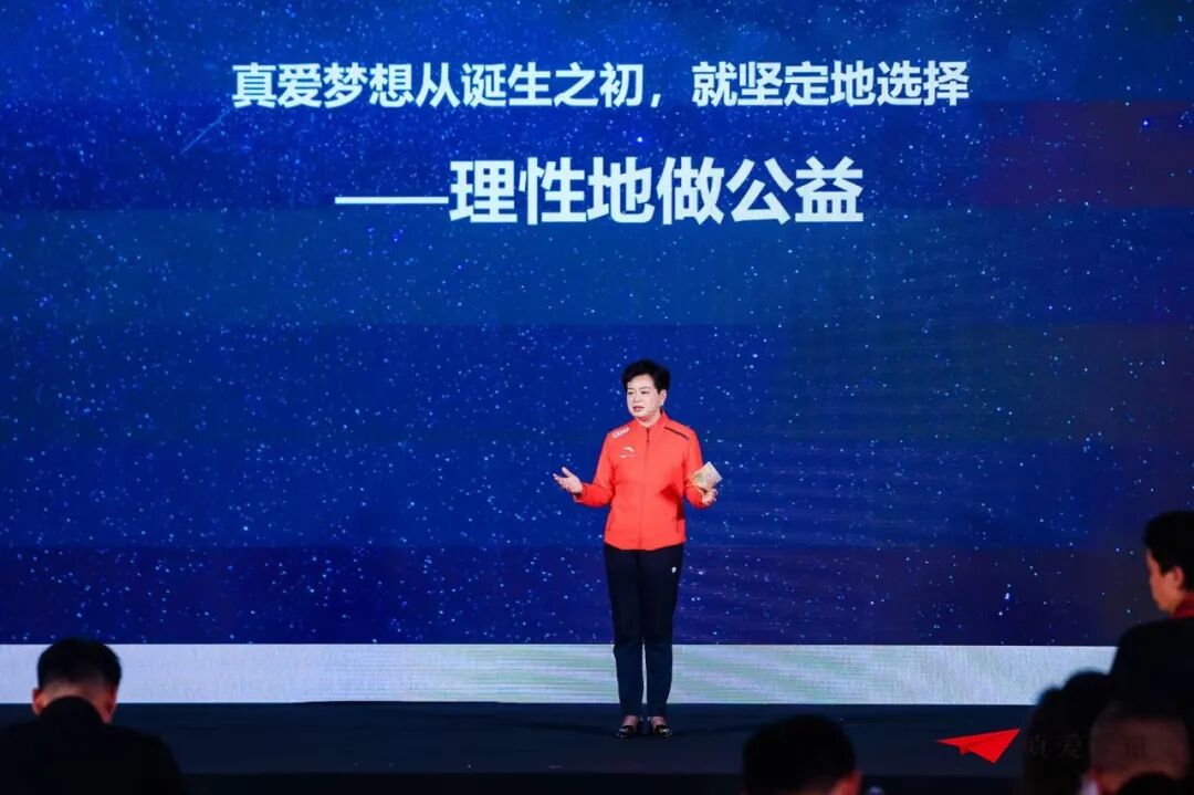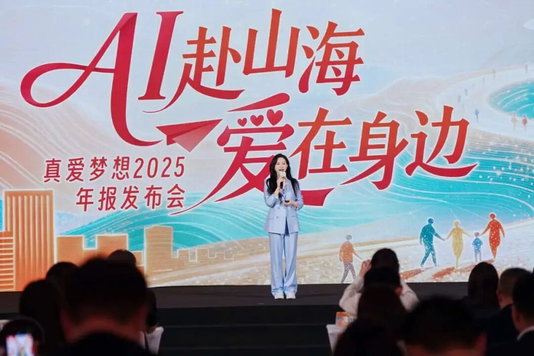 发布会上,真爱梦想创始人潘江雪发表主旨演讲。面对技术洪流,潘江雪明确了基金会的战略转向:真爱梦想正从一个“梦想中心”向数字化、智能化的“AI梦想网络”全面跃迁。