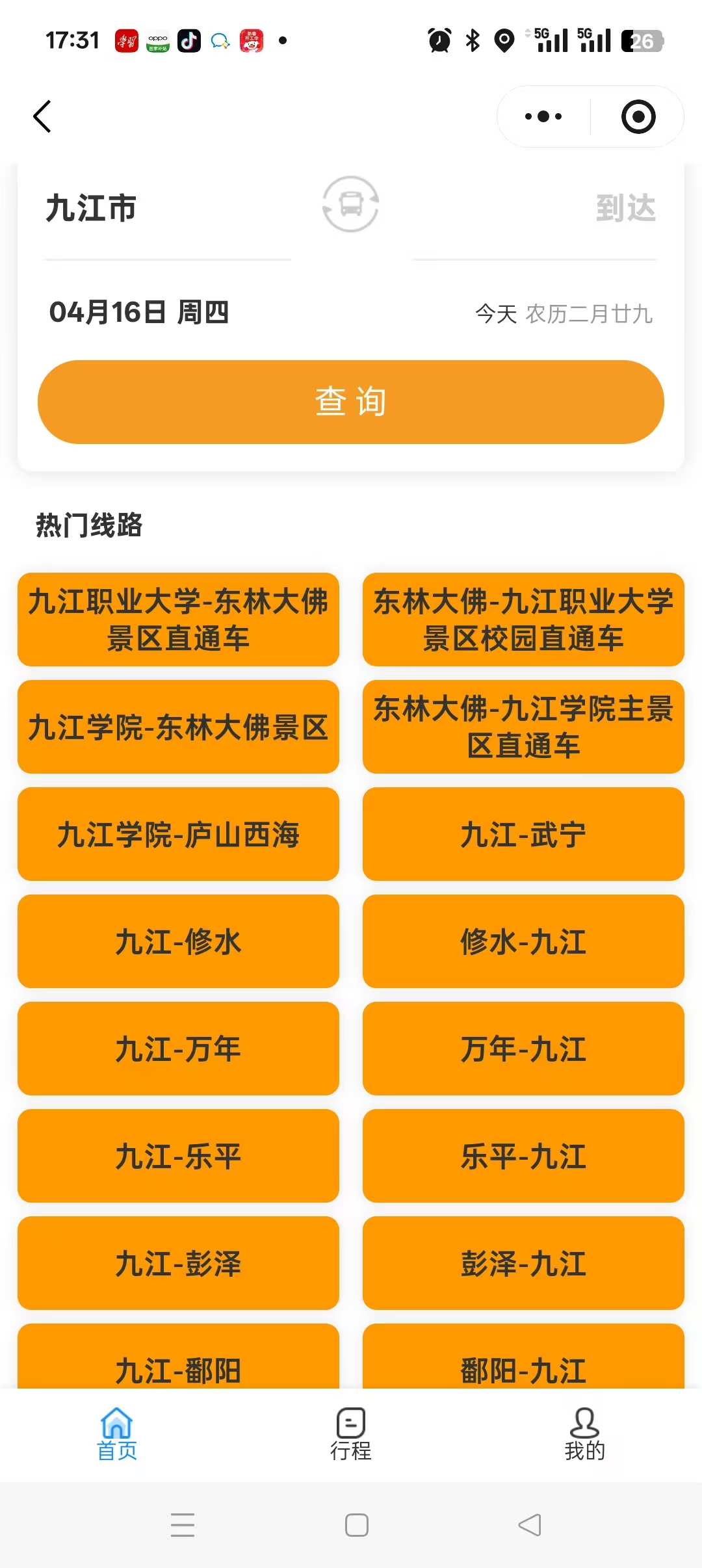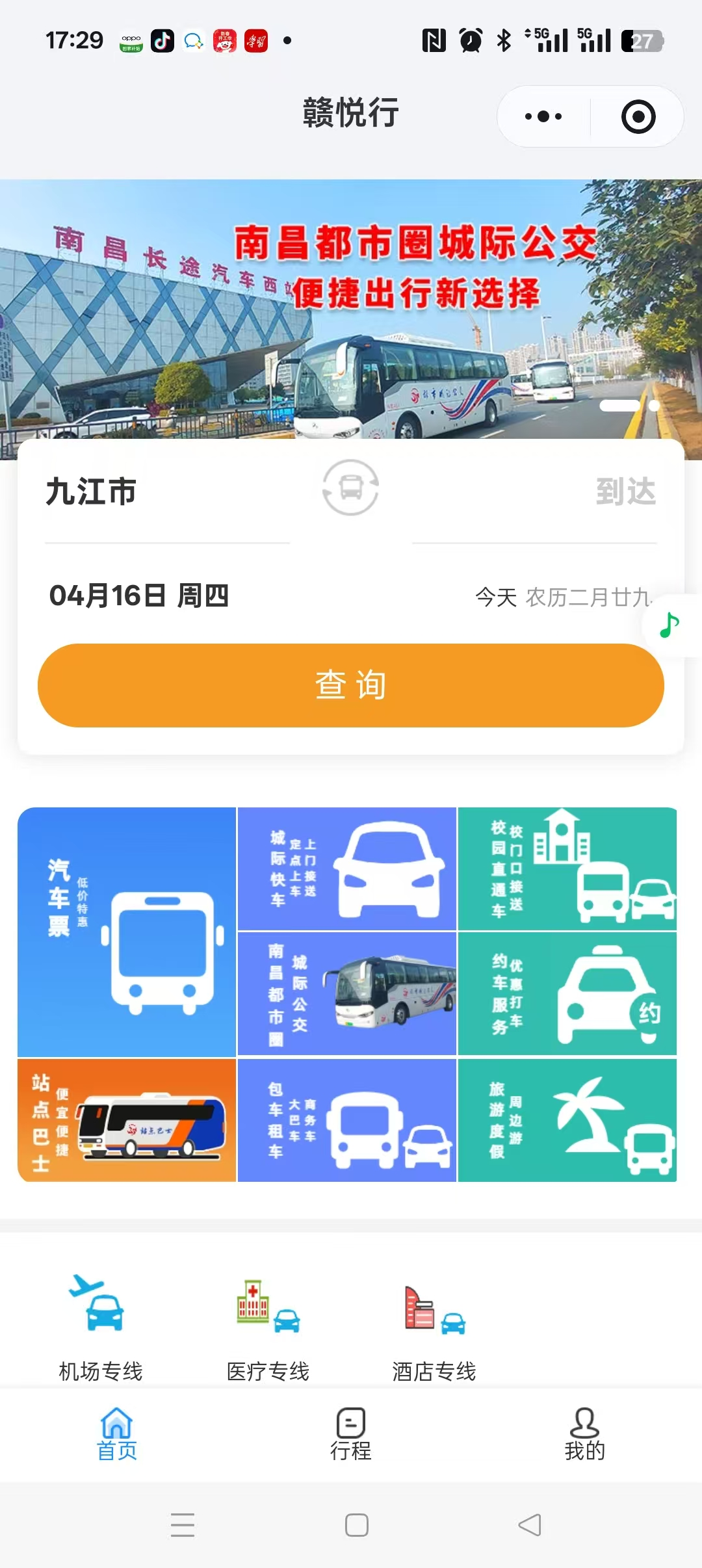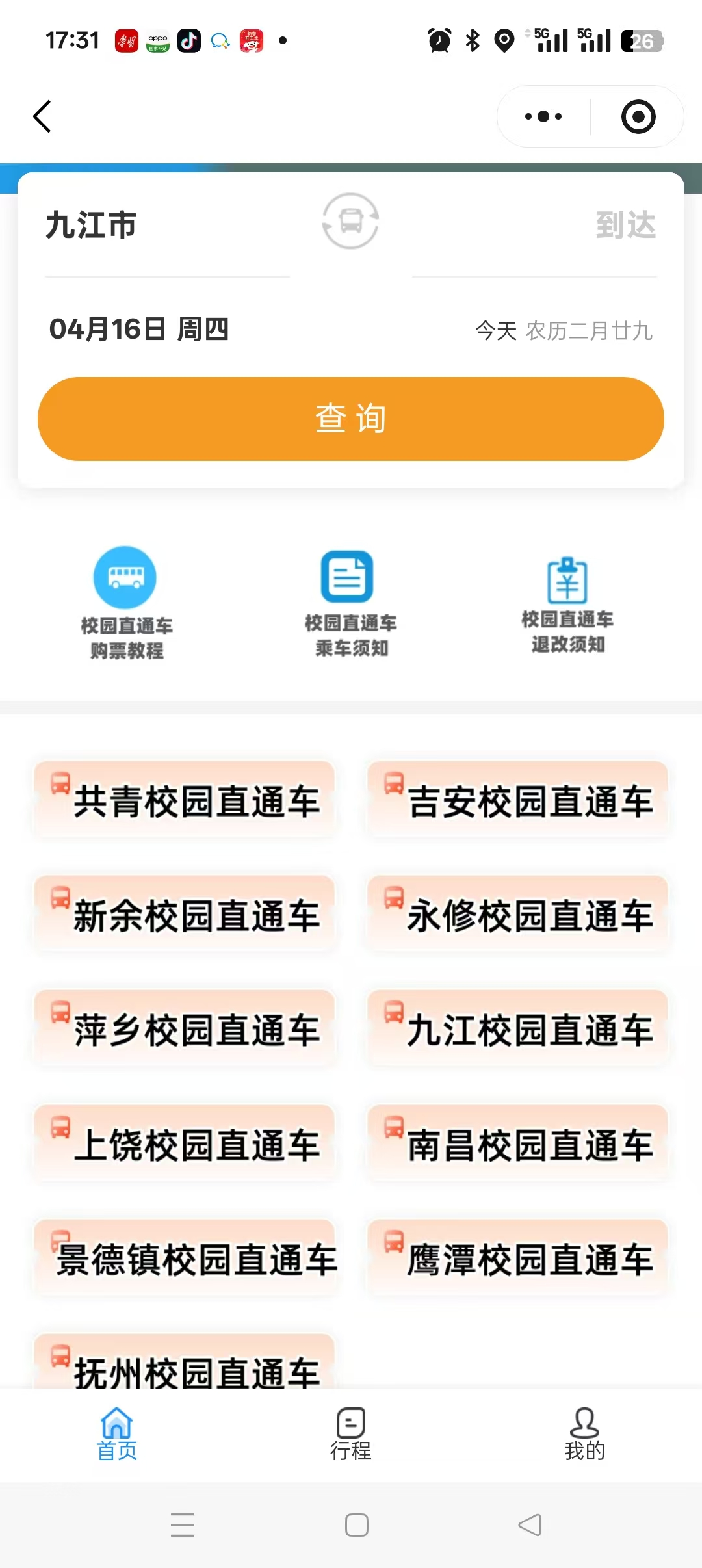 可通过 “赣悦行”微信小程序查询,