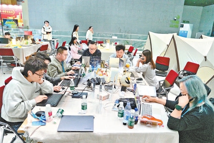 4月20日,AIGC科学电影极限创作营启动,19支跨界创作团队将在48小时内,全程运用AIGC技术,完成一次极限创作。 记者 和冠欣摄