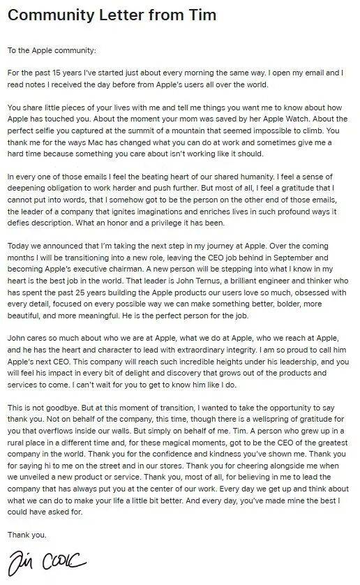 库克卸任,苹果开启特努斯时代!