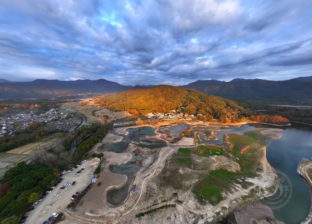 摄于安徽宏村,夕阳余晖洒向宏村,南湖水面如镜,倒映着粉墙黛瓦与远山,时光仿佛在此刻静止,尽显徽派古村的宁静与诗意。