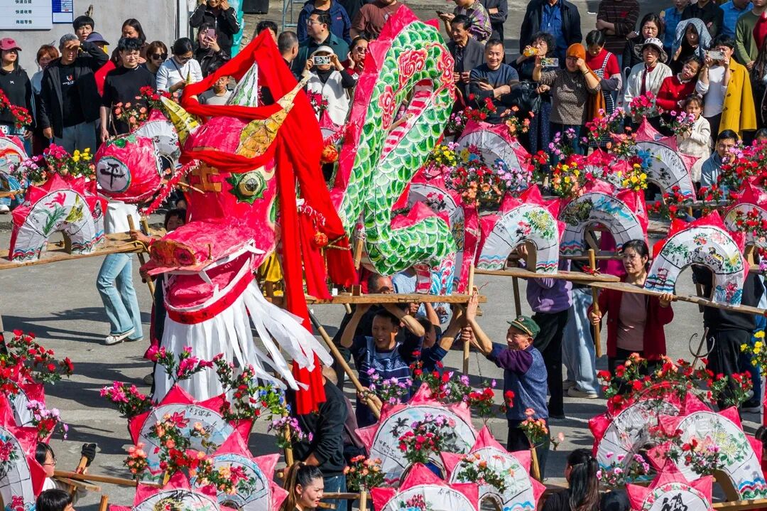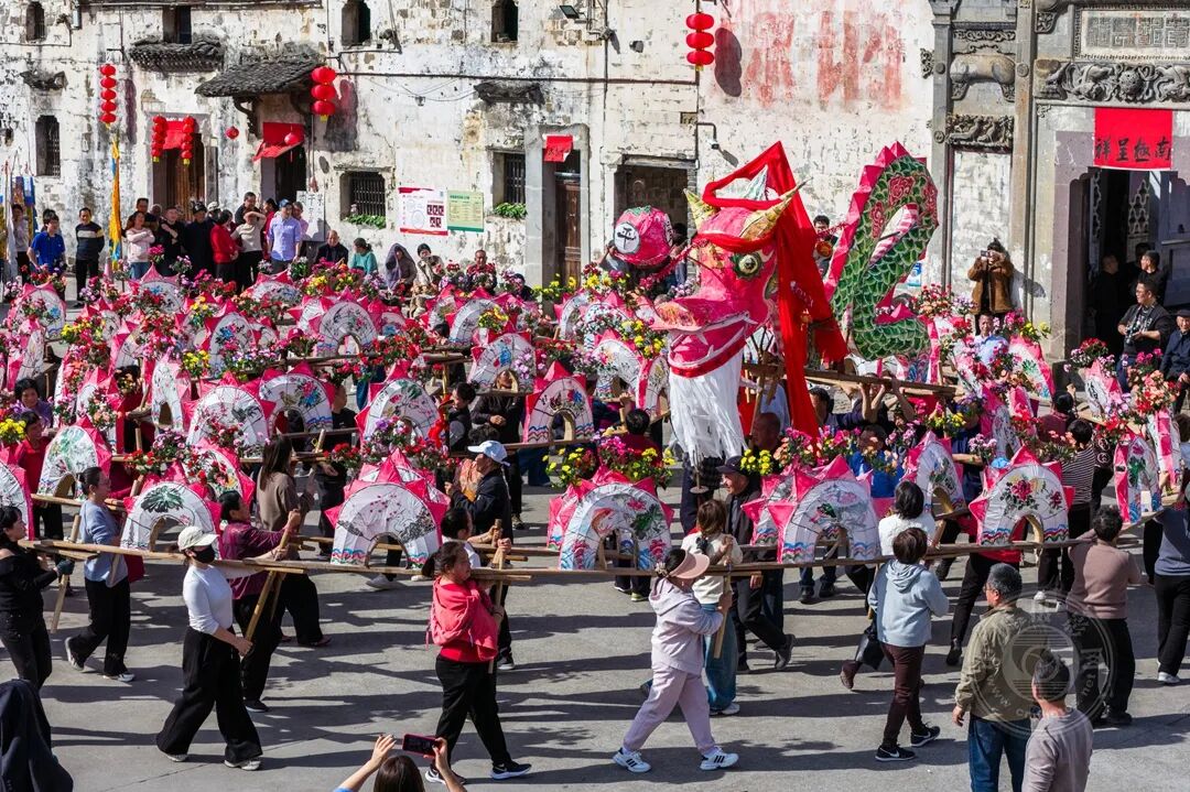 新春时节,非遗板凳龙巡游浙江浦江新光古村。