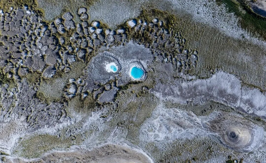 青海茫崖艾肯泉,两个泉眼与周边沙石构成的图案酷似外星人在造访地球。
