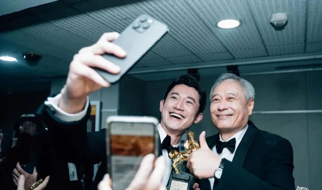 在颁奖礼后台,吴慷仁实现了自己的心愿,与李安合影。