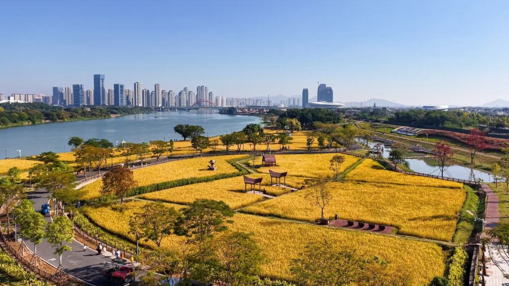 漳州“龙江岁月”景区打造出城市稻田花海。 漳州市高新区 供图