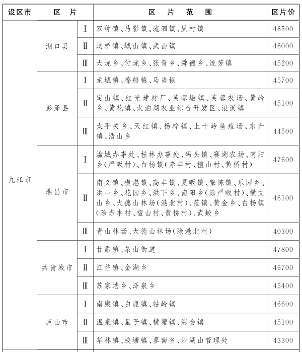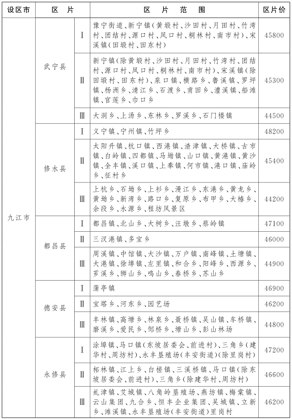 最新通知!九江市各区县征地区片综合地价公布