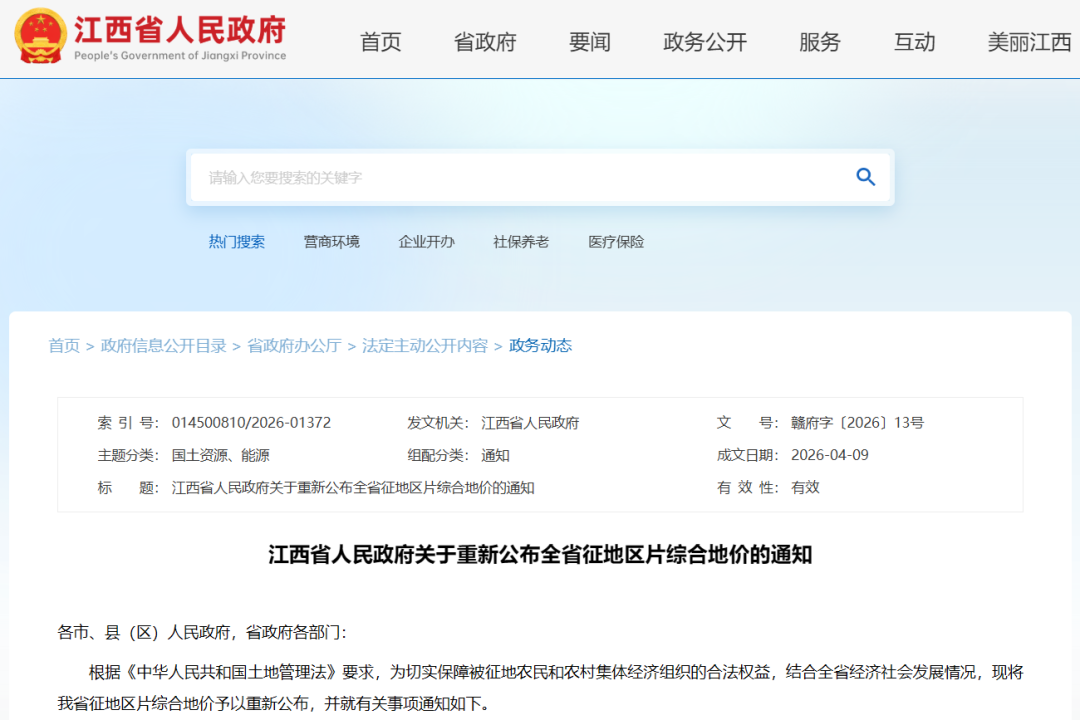本通知自2026年4月21日起施行,《江西省人民政府关于公布全省征地区片综合地价的通知》(赣府字〔2023〕23号)同时废止。