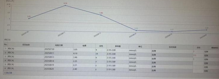 术后复查时,一份报告引起医护团队的警觉——瑞瑞的血钙值高达 4.16mmol/L,而正常范围仅为2.1-2.8mmol/L,足足超出正常值近2倍!