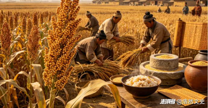 而黍则是我们今天所称的黄米,是一种黏度很高的粮食作物。先秦时期黍曾是北方非常重要的粮食作物,《诗经》中有“彼黍离离,彼稷之苗”的诗句,可见当时黍是和稷一样重要的农作物。甚至有说法认为,秦国的“秦”字就是来源于黍。不过到了汉代,黍的种植面积开始明显下降,地位已经是大不如前了,只在西北一些高寒干旱的地方有一些种植。