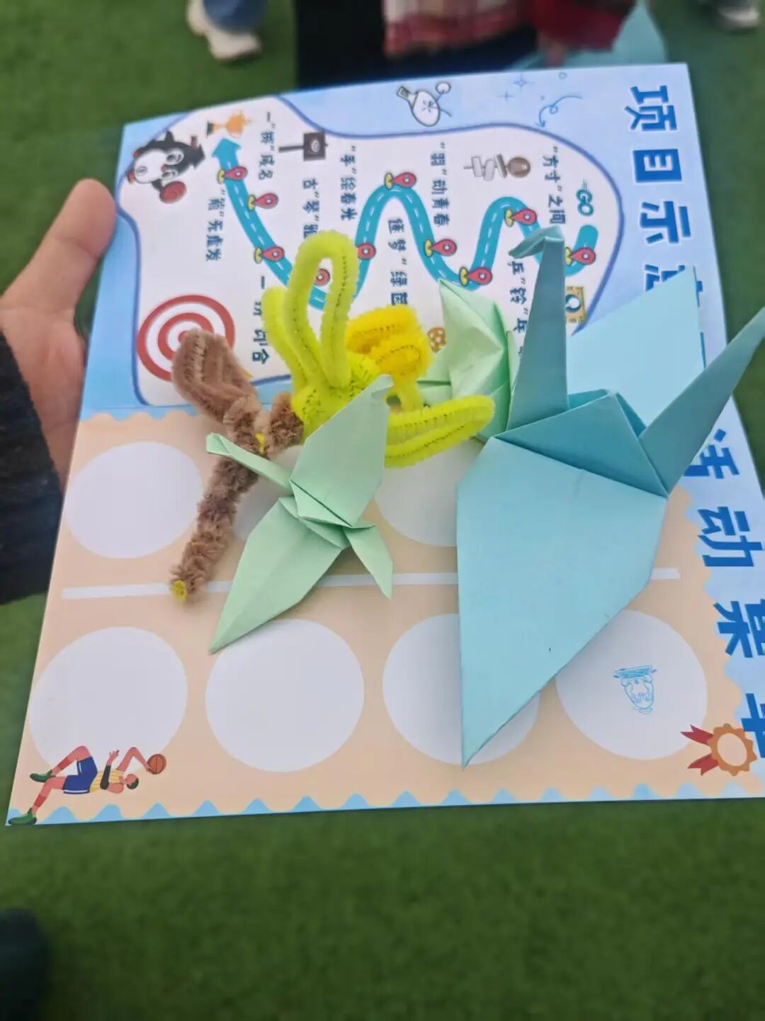 体育嘉年华太快乐啦,折了蓝色千纸鹤,真的感觉蓝色和千纸鹤绝配~晒着太阳慢悠悠折纸,舒服又治愈,超爱我的三位运动搭子!