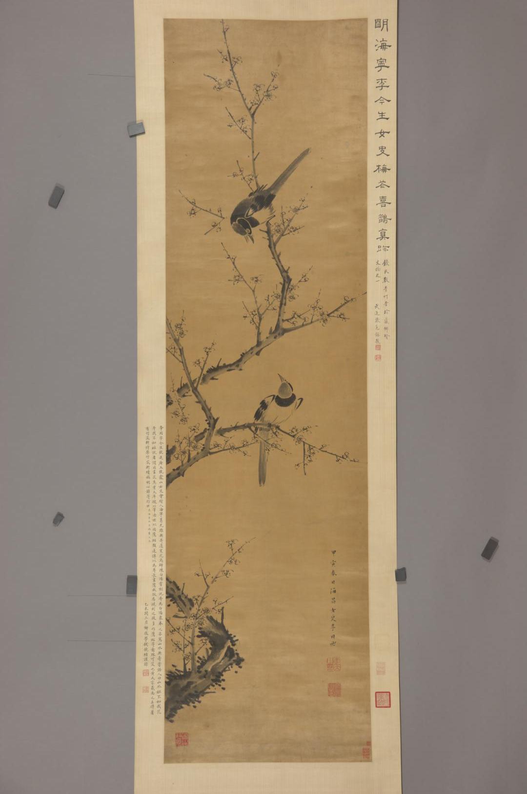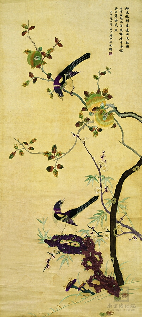 清光绪 刺绣喜鹊梅竹图片