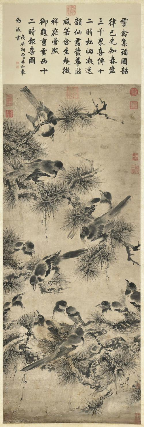 这首诗描绘了喜鹊梳理羽毛立于高枝,远离尘世纷扰的形象,以及其檐头报喜的灵动行为。既展现了喜鹊自由高洁之态,又通过其报喜特质,表达了对祥瑞的向往与对生活的喜悦乐观之情。