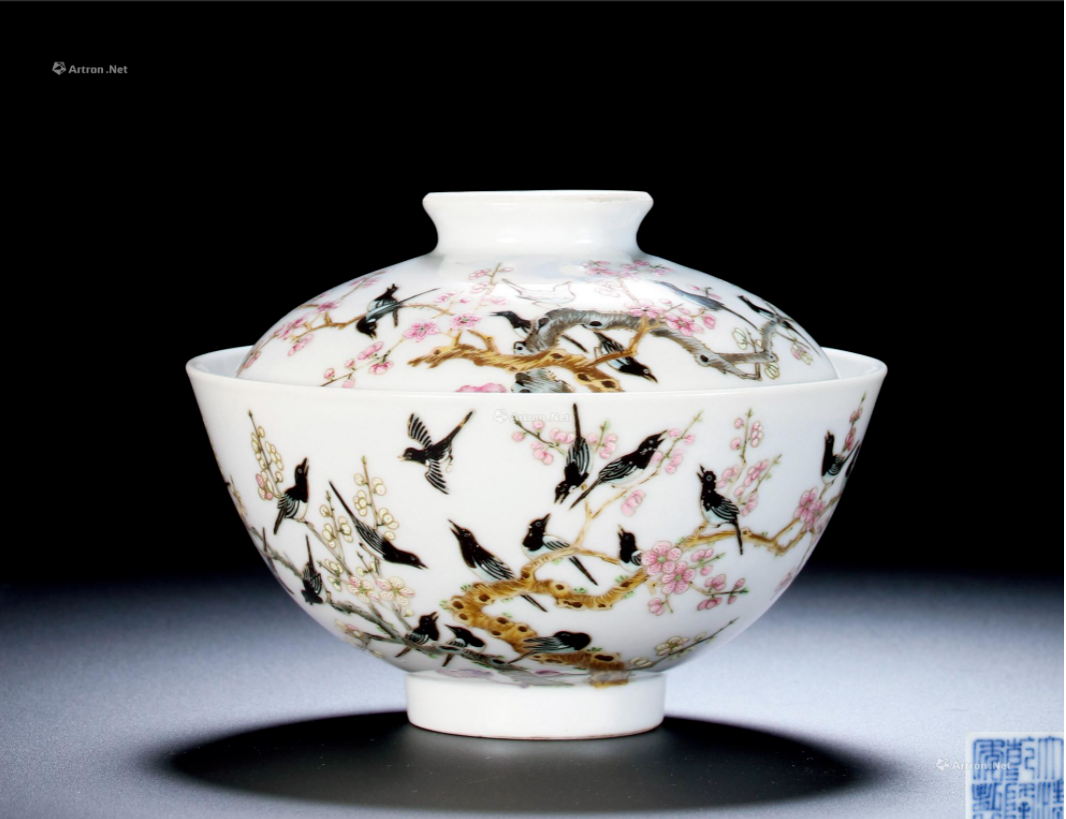 清乾隆 粉彩日日见喜盖碗