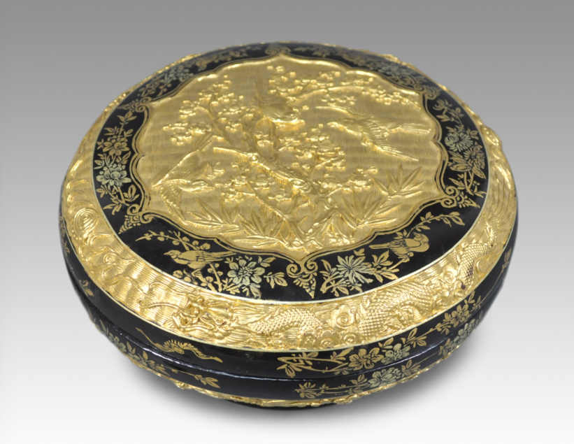 现代 隐起描金喜鹊梅花圆盒