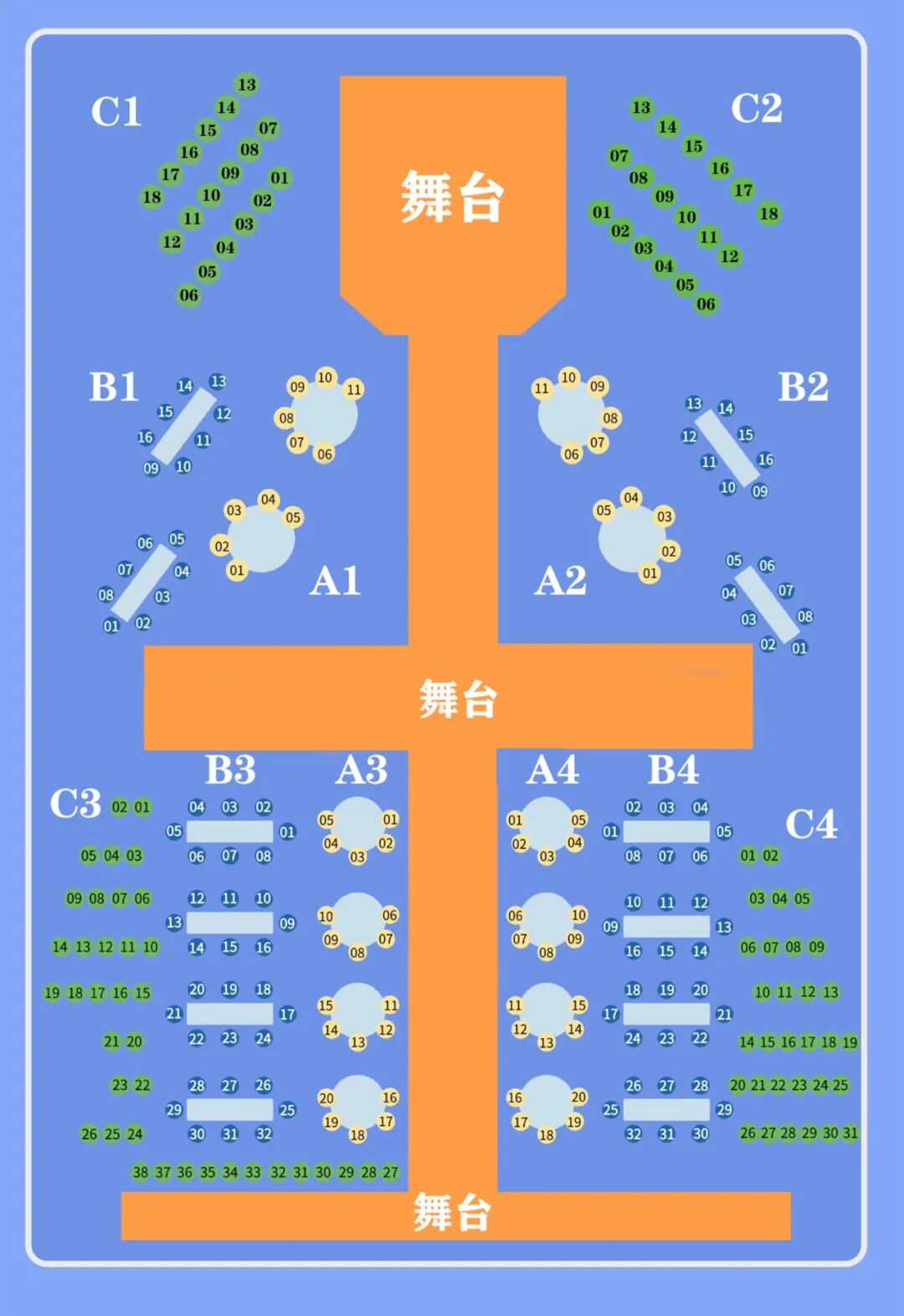 主舞台+T台延伸+四周散座,