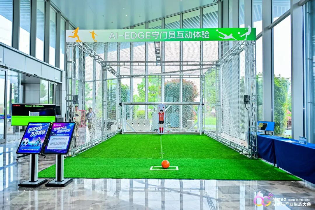 在紫金山集团展位旁,6G AI-EDGE赋能的机器人守门员精准拦截,令人赞叹。“从昨天开始,现场很多观众尝试射门,几乎都被扑了出来。”产品设计企业紫金星宇CEO吴建军介绍说,系统通过高速视觉采集实时获取足球运动轨迹,经由高可靠无线链路下发控制指令,可实现毫秒级响应,展现了6G支撑实时智能控制的技术优势。据悉,这款机器人守门员即将登陆“苏超”赛场。