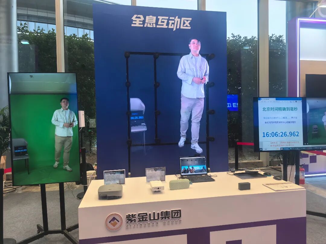 在全息互动技术展台前,一场传统技术与新兴技术的较量正在上演。身在北京的工作人员被实时全息投影在江宁会场背景板上,搭载6G专网技术的大屏则同步显示该工作人员的声音与动作,无丝毫卡顿,而一旁使用传统直播技术的大屏上则明显滞后。“传统互联网直播时延约4秒,而6G技术加持下的直播时延仅0.3秒。”企业负责人解释道。
