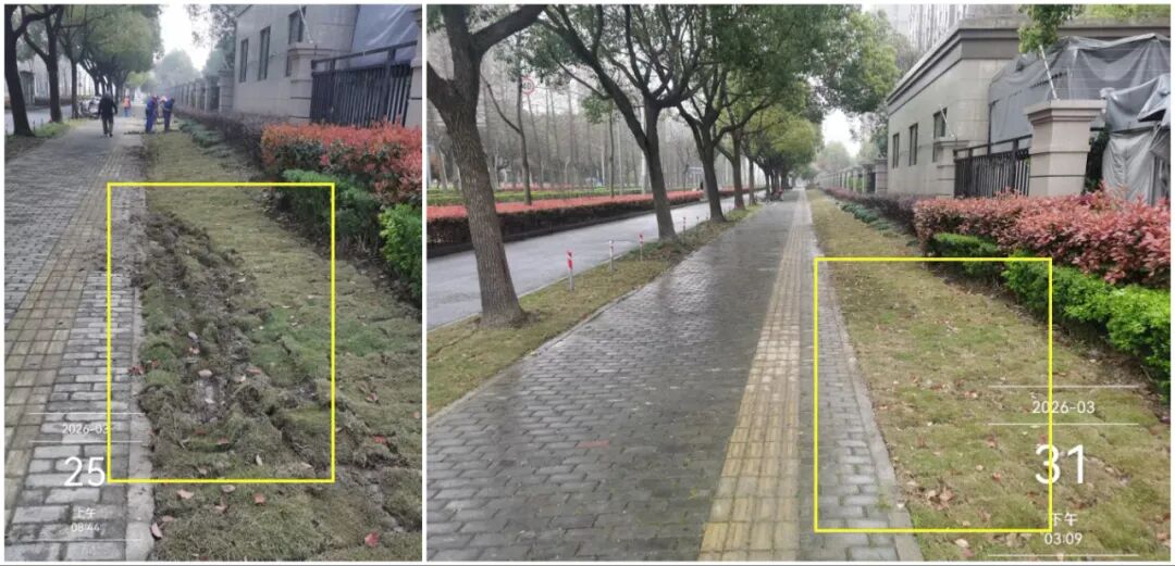 ▲绿化补种整改前后对比图