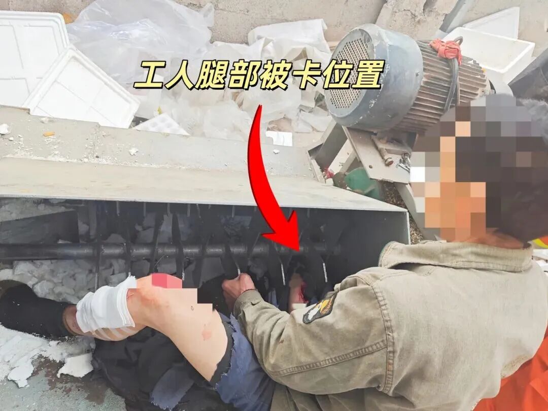 近日,贵阳消防接到报警,开阳县云开街道环城南路一名工人劳作时,右腿被机器卡住情况紧急,接警后立即出动赶赴现场救援。目前,伤者大腿经缝合后已无大碍,正在医院进一步治疗中。(贵州消防)