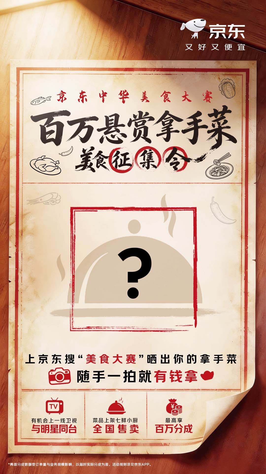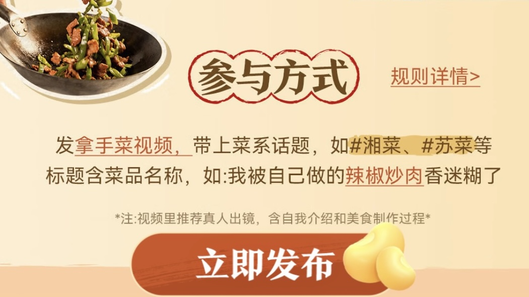 这次大赛不仅是给厨神们一个露脸的舞台,更是让美味变现的实在途径。一旦优胜菜品独家上线京东七鲜小厨门店,创作者即可享受菜品销售分成,最高冲击百万级收益。只要你菜做得好,不用租店面,京东帮你全国上架!