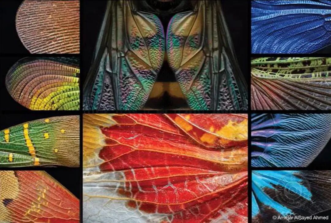 显微镜头揭开了昆虫翅膀的隐秘宇宙。透明翼膜间精巧的几何结构,在精准光线下绽放出令人惊叹的色彩与形态,展现这些生灵亿万年来进化出的生存智慧。