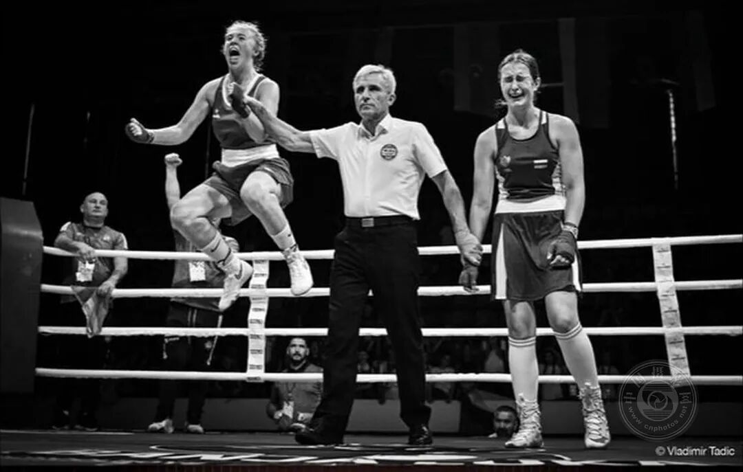 拳击台上,裁判握住两位少女的手腕即将宣布赛果。当胜者手臂被举起刹那,她脸上迸发的狂喜与败者佝偻的背影形成强烈对比——这一刻凝练了竞技体育的核心:荣光与遗憾永远相生相伴。