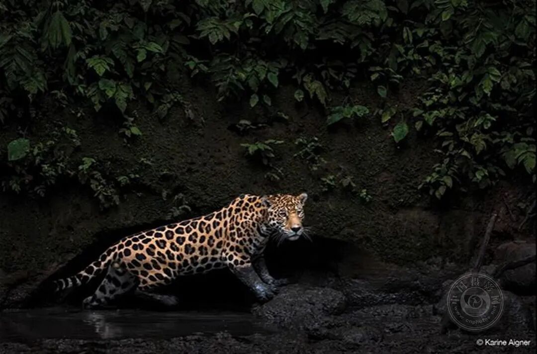 亚苏尼国家公园的湿热幽暗中,雄壮美洲豹穿越亚马逊丛林泥滩。斑驳毛皮在粗砺岩石与涟漪浅水间闪烁,即便百米之外,它锐利的目光仍令人肃然。