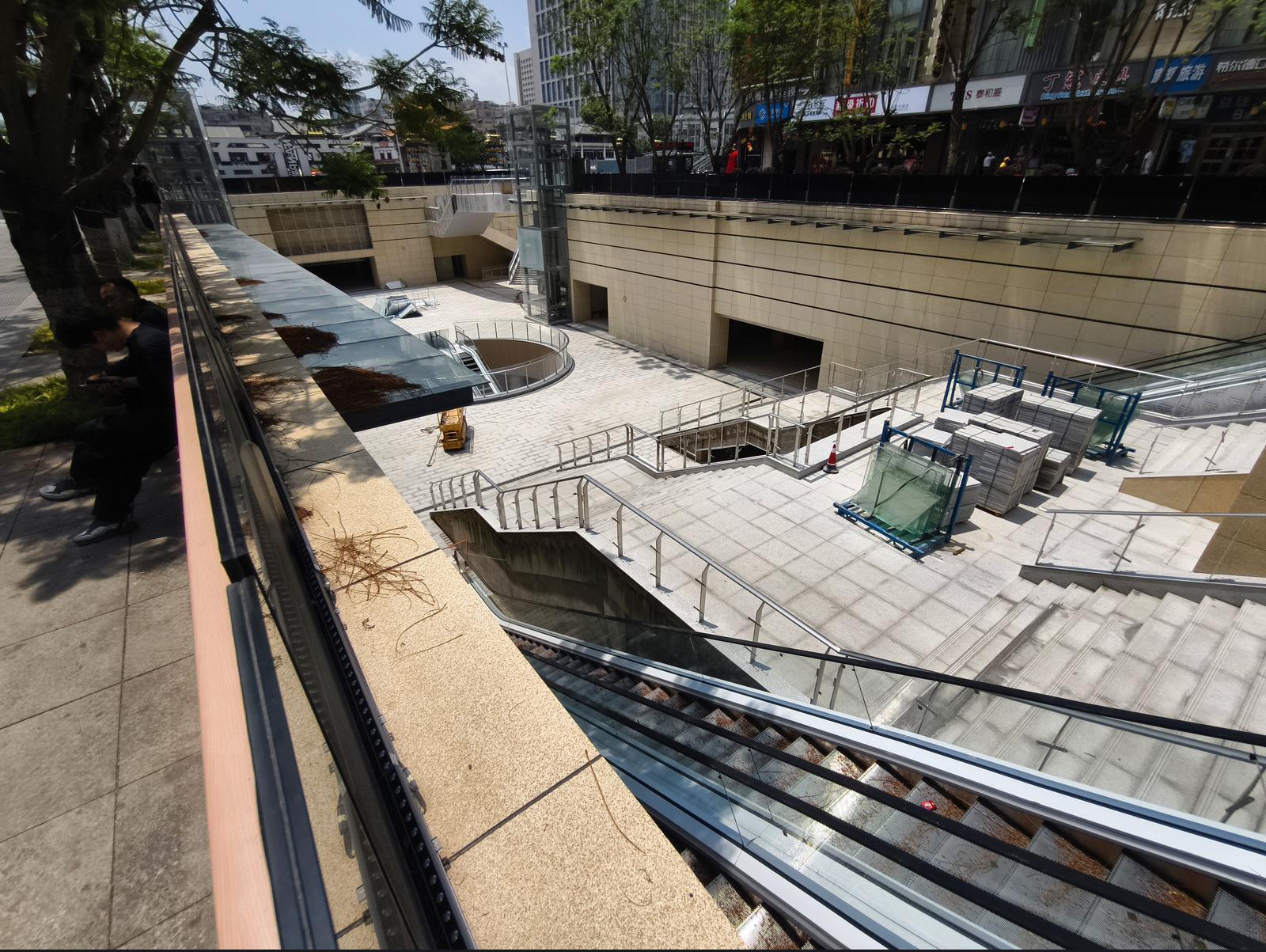 现在看到的围挡起来的下沉广场与地铁口接驳,也就是未来地铁金碧广场站的C出口,整个地铁层包含地下商场共设有17个出入口,其中有9个是直梯出入口,连接了金碧广场到南屏广场,范围包含北起东风西路、南屏街,中段有宝善街、柏联广场、南强街东口、南强街西口,最南端到金碧路两侧。目前招商引资工作正在有序开展,多个知名品牌商家入驻,项目计划2026年12月开业。