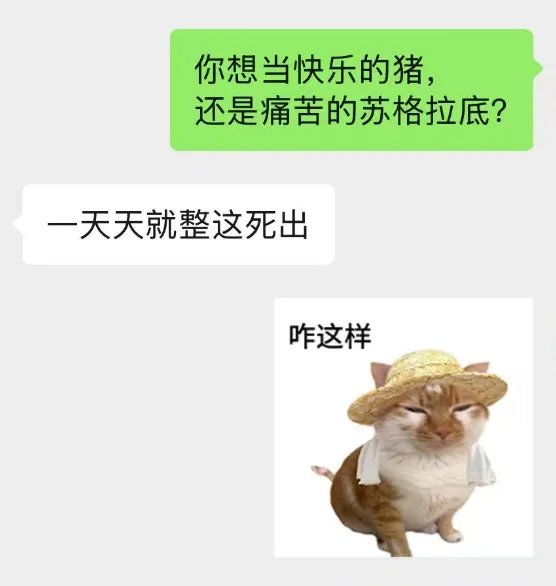 如果这么大差别的话,我当然想成为痛苦的苏格拉底,就怕是个痛苦的猪,该怎么办?